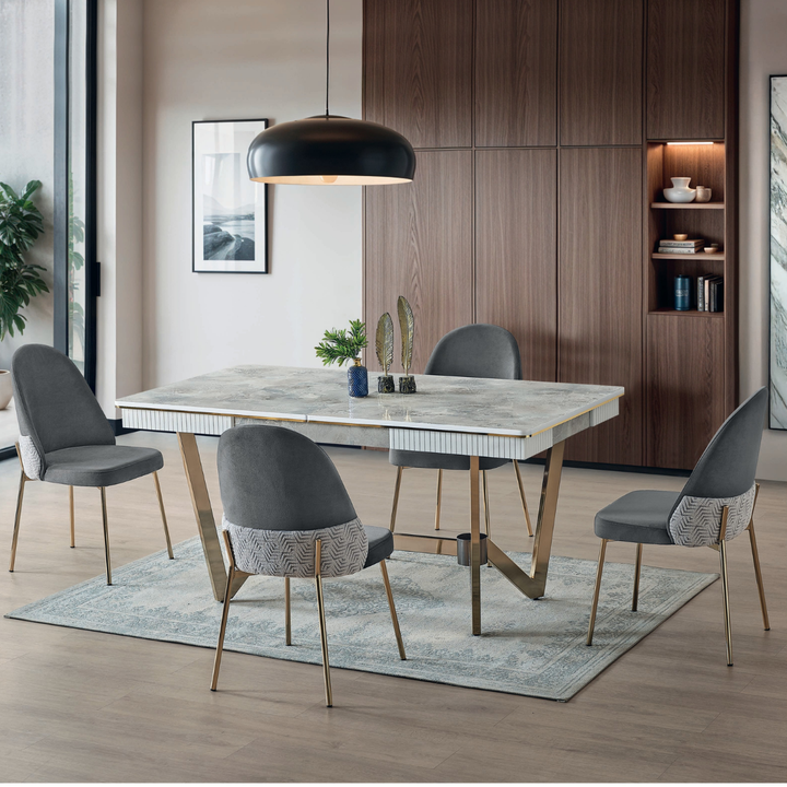 Öykü, mermer yüzeyi ve altın detaylarıyla modern lüksün simgesi.