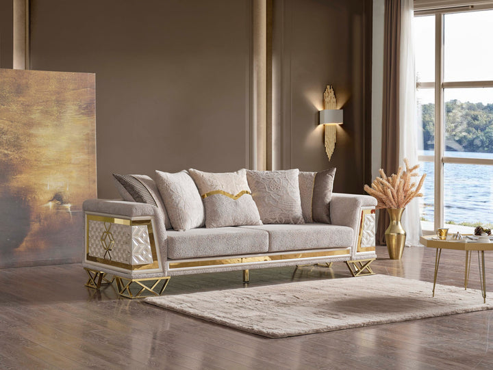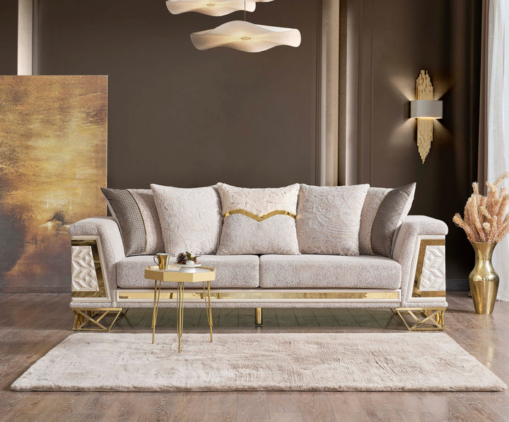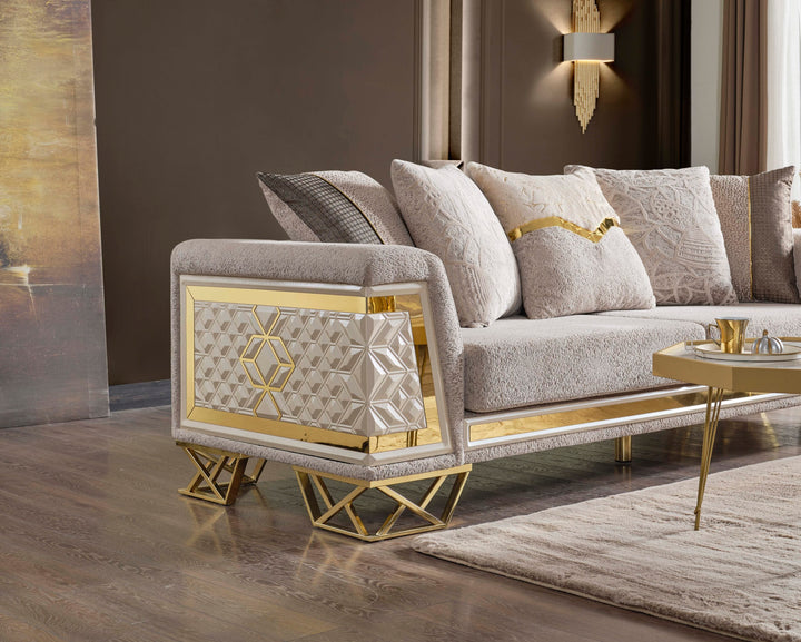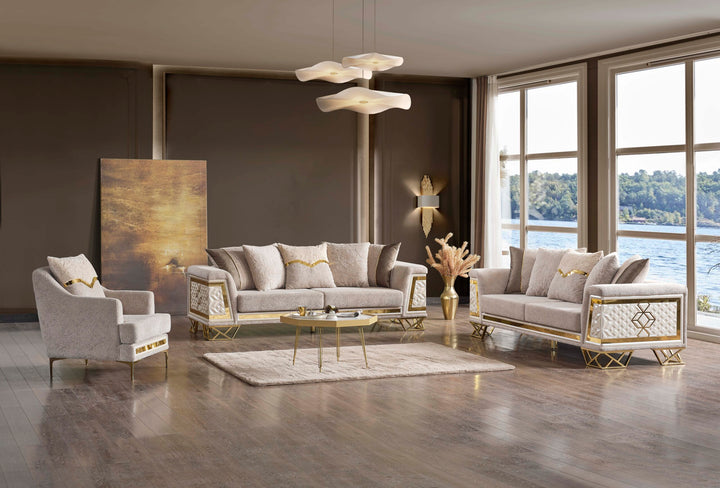 Klasik çizgilerin modern bir yorumuyla tasarlanmış, göz alıcı ve konforlu bir oturma grubu. İnce işçiliği, seçkin malzemeleri ve zarif detaylarıyla öne çıkan bu takım, evlerinize asil bir hava katacak.